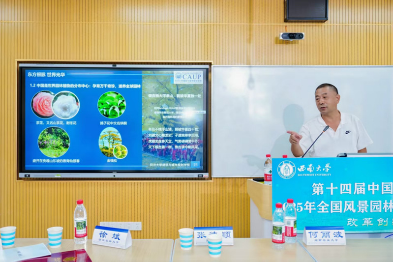 张德顺教授在“分论坛1:课程思政论坛”中,以“溯根源·谋创新·促对话”为题进行了报告。报告围绕 “中国是世界园林之母” 的核心命题展开,分四个维度系统阐述:其一,追溯历史脉络,以重走 Wilson 考察之路为切入点,阐释中国作为世界园林植物分布中心的地位,及中国植物对全球园林发展的深远贡献;其二,聚焦当代引种创新实践,提出 “融西建模探新径,驯化归宗合地宜” 的研究思路 —— 通过模糊相似优先比拓展雄安园林引种视野,依托气候信封模型探索园林树木引种路径,针对气候变化需求建立气候 - 物种矩阵筛选城市植物,并基于 “功能 - 服务” 框架创建园林树种选择新方法;其三,呈现国际交流与科研成果,包括十五年英文授课积累、培养异域学子开展园林史研究的经验,以及坚持学术前沿探索、深耕科研并追求顶尖期刊发表的成果;其四,展示植物园建设在生物多样性保护中的实践,以济南、眉山、潍坊、辰山四座植物园为例,体现园林植物研究的应用水平。报告反响热烈,获思政入会代表的一致好评。