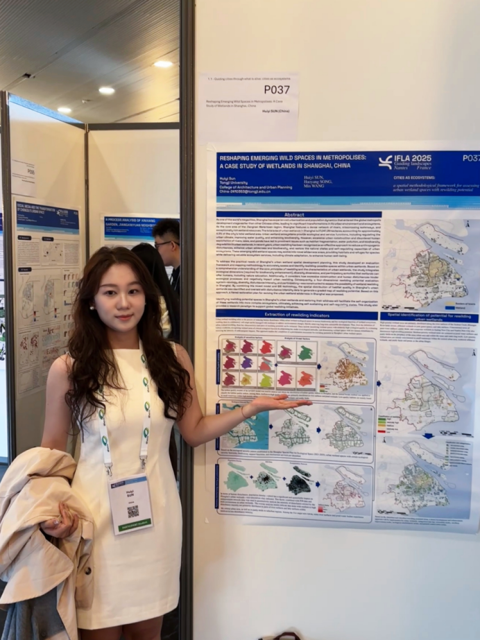 博士生孙慧怡(指导老师:王敏副教授)以“Reshaping Emerging Wild Spaces in Metropolises: A Case Study of Wetlands in Shanghai, China(孙慧怡、宋昊洋、王敏 Topic: Guiding cities through what is alive: cities as ecosystems)”为题进行海报展示。