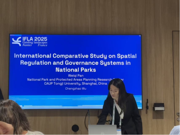 在区域引导-大尺度区域的组织(Topic 2: Guiding territories 2.3-BO-S1 Organisation of large territories)分会场,我系潘维琪同学(导师:吴承照)发表了题为“国家公园空间用途管制与治理体系的国际比较(International Comparative Study on Spatial Regulation and Governance Systems in National Parks)”的演讲。