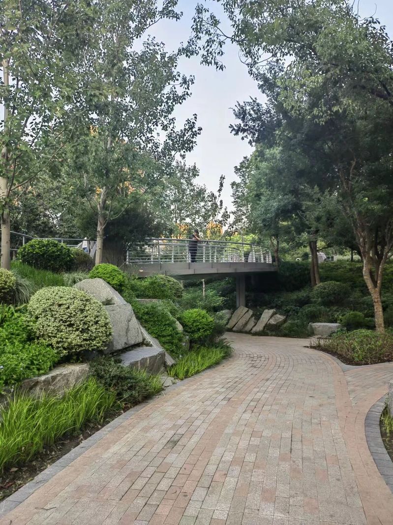 当步入中兴公园,那一处处景致宛如一幅幅灵动且充满诗意的画卷,每一个细节都深深承载着设计师对中国园林的深邃感悟以及对未来园林的无尽畅想。蜿蜒曲折的小径,恰似灵动的丝带,轻柔地牵引着游人的脚步,仿佛在低声吟唱着“曲径通幽处,禅房花木深”的千古绝句,引领人们一步步探寻那隐匿于自然深处的宁静与美好。模糊的边界,如梦幻般若有若无,隐于灌木中的座椅墙,似羞涩的精灵,悄然融入自然,毫无违和之感;整体倾斜的大块叠石,犹如大自然的鬼斧神工,完美诠释了“虽由人作,宛若天成”的至臻理念。自然绿地旁的雨水花园,坡地与凹槽相互依偎,如同大地温暖的怀抱,温柔地接纳着雨水的轻抚,实现雨水的滞留与下渗,奏响了一曲生态与自然和谐共生的美妙乐章。儿童活动区内,低龄与大龄区域的精心划分,彰显着对人类行为与体验的细腻关怀,如同一束温暖的阳光,洒落在孩子们的心田,让他们能在属于自己的天地中尽情释放童真。