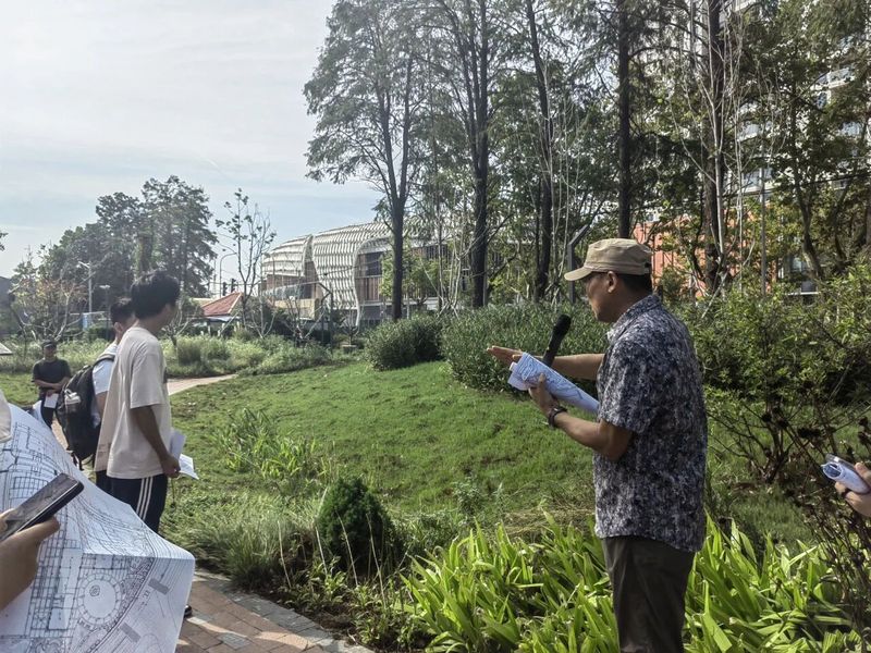 2024年9月27日,由同济大学建筑与城市规划学院景观学系举办的LANDSCAPE TOUR系列活动—“与设计大咖一起游公园顺利举行”!本次活动特别邀请了上海意格环境设计有限公司总裁马晓暐,带领大家游览参观包括中兴公园等几个由马老师领衔设计的城市公园。本次活动吸引了来自建筑与城市规划学院、国豪书院等三十余名学生,同学们在马老师的带领下深入城市中的绿色宝藏,奔赴一场关于自然与设计的奇妙邂逅。