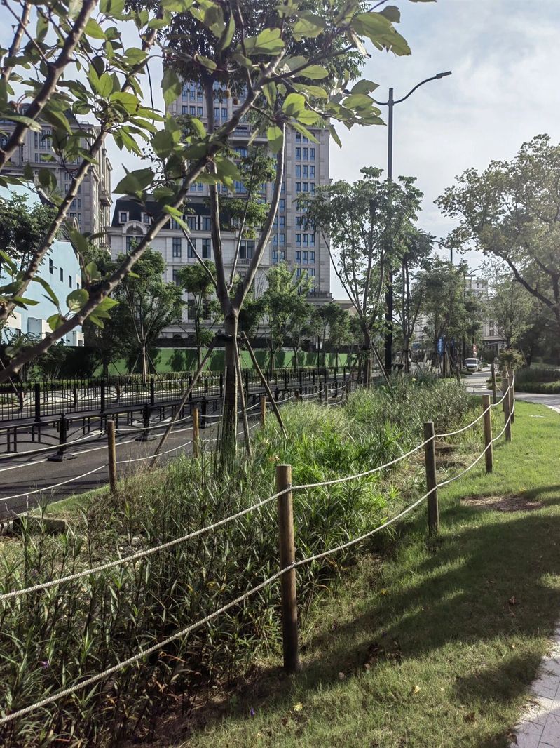 人性化设计是平陆路绿地一大特点,马老师团队在平面上采用曲率化人行道设计、利用竖向空间打造雨水花园,在提高行人通行效率的同时,保证了人们的步行体验。从而在道路上完成了公园化,使得人们仿佛漫步于绿野之中。