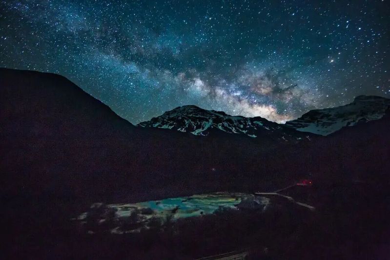 黄龙位于四川省阿坝州,是联合国教科文组织认定的世界自然遗产地。黄龙地处高原腹地,远离城市照明干扰,地形相对封闭,具备优良的夜空观测环境基础。该地区拥有独特的钙华地貌、雪山峡谷、原始森林等生态资源,同时也作为生物多样性热点区,夜间环境静谧,干扰极少,为暗夜保护提供了得天独厚的自然条件。在2024至2025年期间,申报团队在核心区域部署了夜空质量监测系统,实测天顶平均亮度指标优于国际暗夜公园认证标准,展现出高质量的暗夜星空观测潜力。