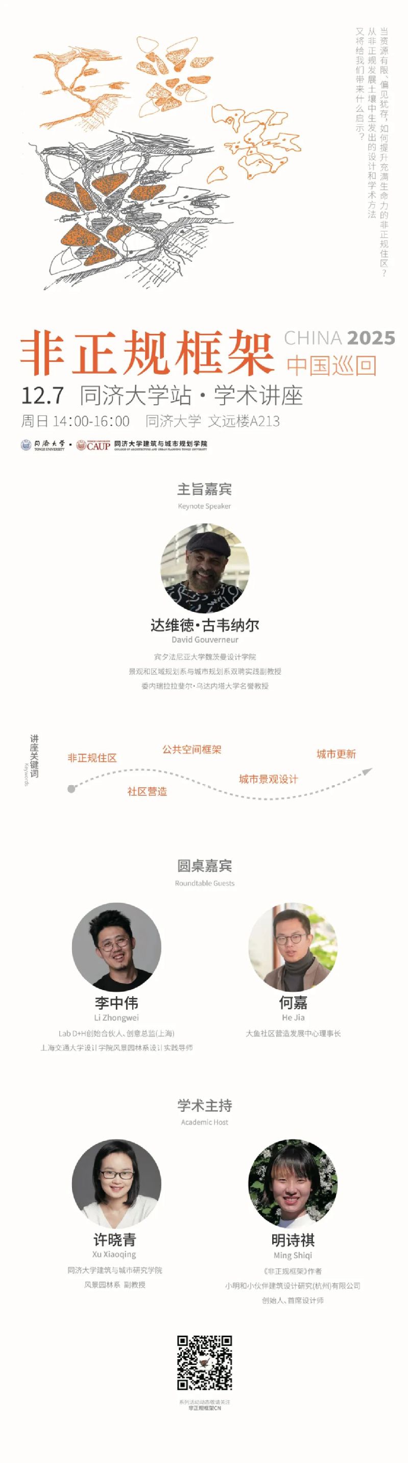 在同济大学,一场围绕“非正规性”的对话即将展开。非正规框架的创建者、宾夕法尼亚大学的达维德·古韦纳尔,大鱼营造社区营造发展中心联合发起人、理事长何嘉,以及景观设计师、上海交通大学设计学院副教授,Lab D+H上海联合创始人李中伟,将共同探讨非正规框架对城市发展的启示,及其在中国的可能意义。