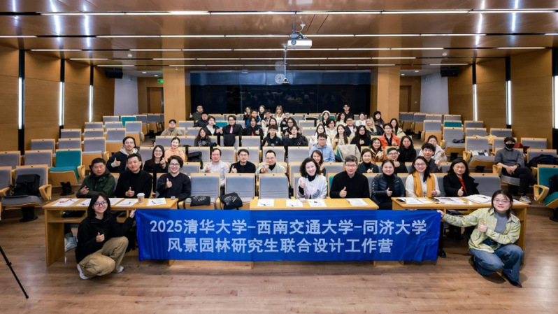2025年11月21日至22日,清华大学、同济大学和西南交通大学风景园林研究生设计课联合教学活动在清华大学成功举办,包括三校中期成果汇报和专业实践考察活动。课程选题“从灰色到多色——上海火车站片区的未来畅想(2035)”,三校共16位教师担任评图嘉宾,包括清华大学庄优波、郑晓笛、邬东璠、史舒琳、许愿;同济大学章明、汪洁琼、陈蔚镇、戴代新、杨晓青、茅岚、杨凌晨、孙轶家、朱绍婷、李宾;西南交通大学傅娅、李翔、钱丽源、吴然。清华大学博士研究生曹旭卿,同济大学博士研究生吴尤、徐光耀担任课程助教,三校79位同学现场参加活动,分20个组进行了中期成果汇报。