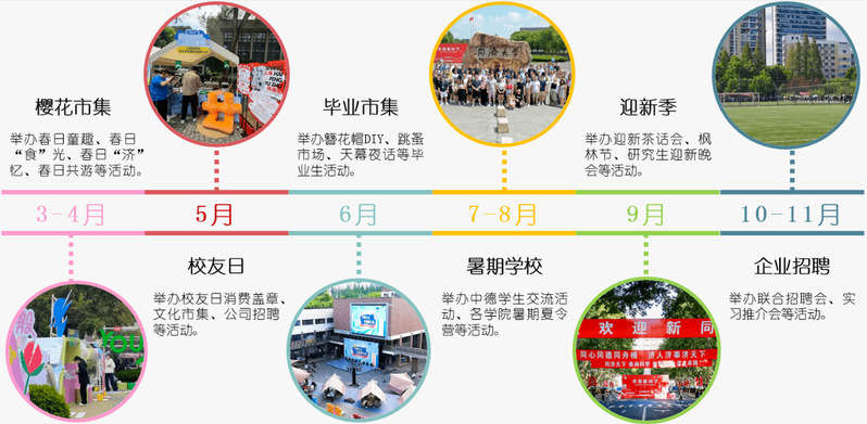 这里可承接招生宣传和迎新季活动,成为示校园文化与活力的 “第一印象区”;可举办樱花集市、校友日等日常与节庆活动;可开展暑期学校、校园招聘等交流与求职活动;还可以将场地转化为充满仪式感的毕业庆典与同济er独家记忆的“天幕夜话”。