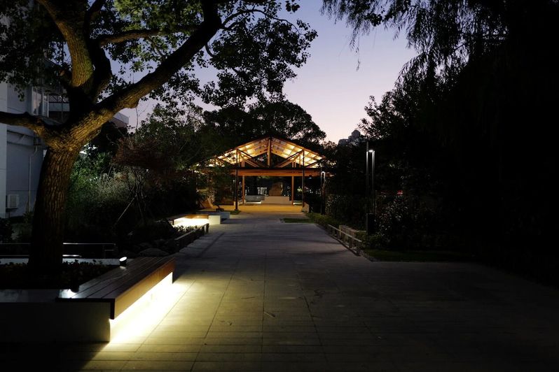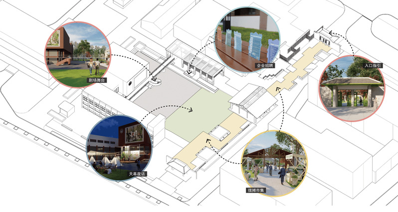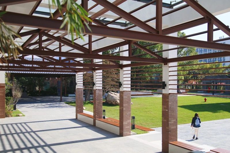 时间的连通:它将被纪念的过去(二食堂记忆)、被享受的当下(亭子与绿地)与面向未来的活力(经纬楼)编织在一起,形成连续的时空体验。