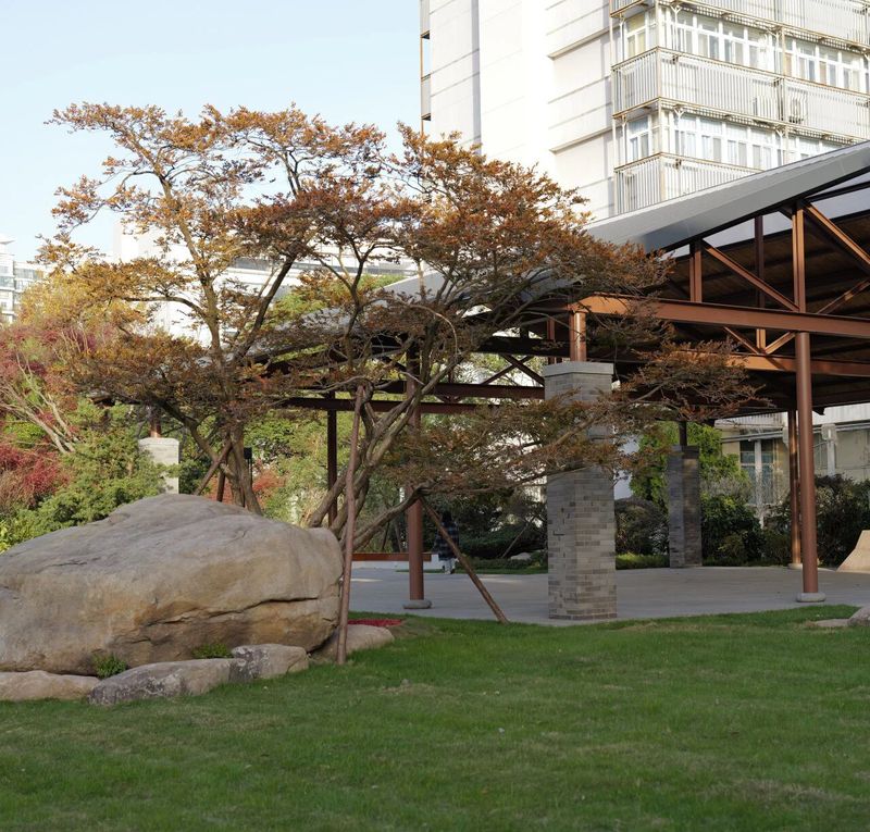 图5-3c 植物疏解后显露出来的红枫成为亭角一景