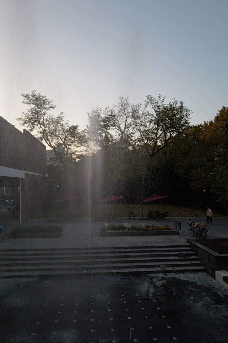 保留现状将节水理念转化为可视景观的水系,同时对场内植物进行疏解与重构,传承同济大学务实、创新的生态智慧。