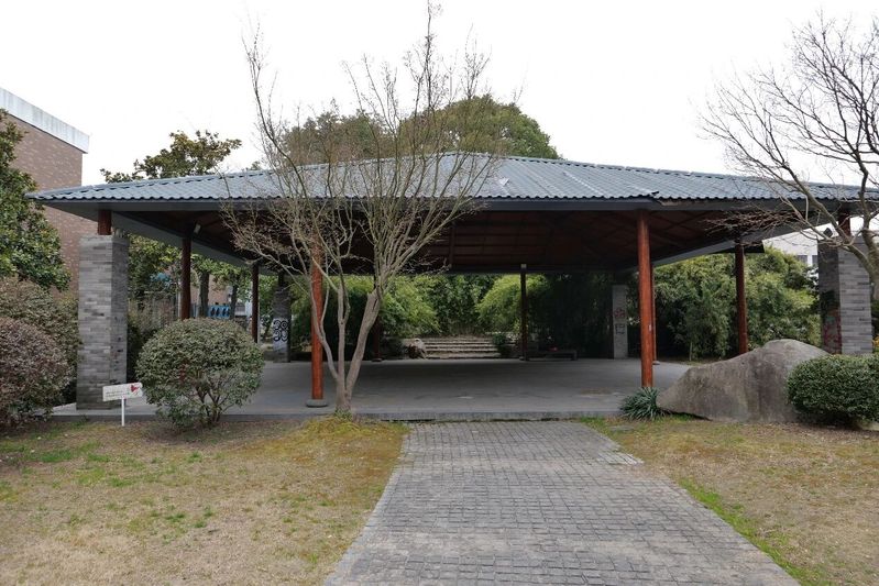 图5-3b 保留黄杨与二食堂记忆亭共同造景