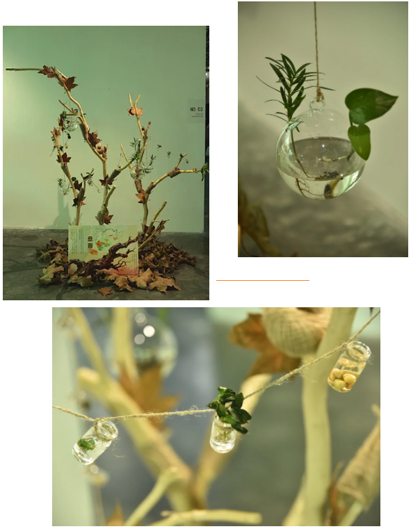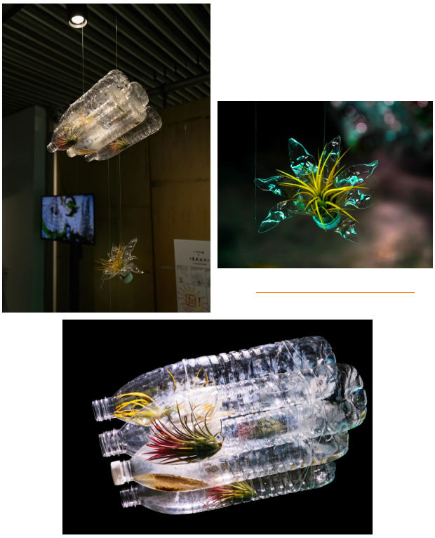 垃圾的堆积对自然环境的污染及破坏是毋庸置疑的。在众多垃圾种类之中,塑料瓶子或多或少是垃圾堆积及环境污染的罪魁祸首。既此届展览的主题为:“生态重构:困境、突破及新生”;我们想通过以植物的视角来昭告天下垃圾给自然生物带来的祸害。它们或许无法说话、蠕动,但却是实实实在在活着的生物;希望观众看了之后能为其类所面临的困境感到份怜悯之心;并下决心未来丢垃圾是应当三思而行。