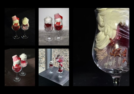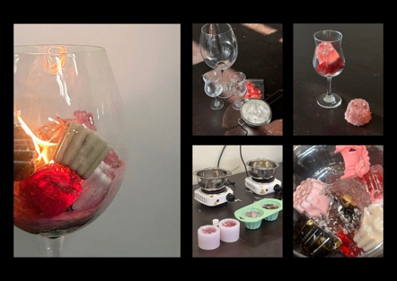 在这杯特制芭菲中,干花枯叶与金属塑料被一同封存于蜡体之内。这种凝固的状态不仅是人造物与自然界高度混杂的时代缩影,更映射了食品工业的现状——光鲜统一的外表下,往往掩盖着复杂的成分。而蜡烛的燃烧则隐喻了“食用”的过程,燃尽后留下的狼藉残渣,恰如我们无法消化的胃。