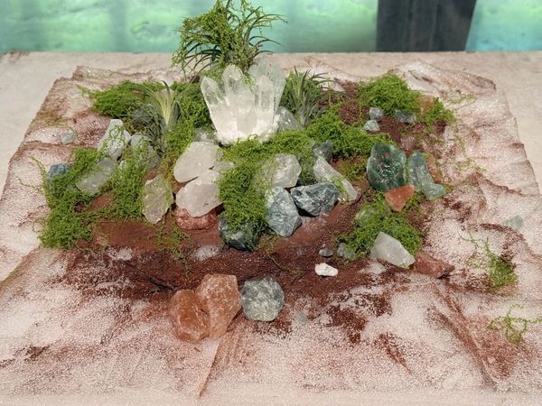 在混乱的上方,有一棵活蛇植物,在玻璃圆顶下受到保护,周围环绕着绿色的苔藓。在柔和的LED光的照耀下,这最后一层象征着大自然的更新和复原力。这是生命在令人窒息的环境中挣扎生存的最后一口气,提醒人们希望仍然存在,但前提是我们选择保护它。