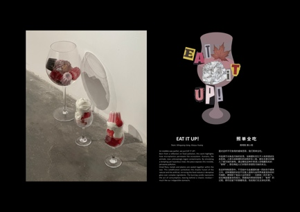 作品源于对食品污染的深刻反思。当微塑料无孔不入地渗透进生态系统,人类与误食塑料的动物并无二致,都在无意识间摄入了被污染的食物。通过模拟这种外表诱人却暗藏危机的“食物”,意在唤起人们对隐形渗透性污染的关注。